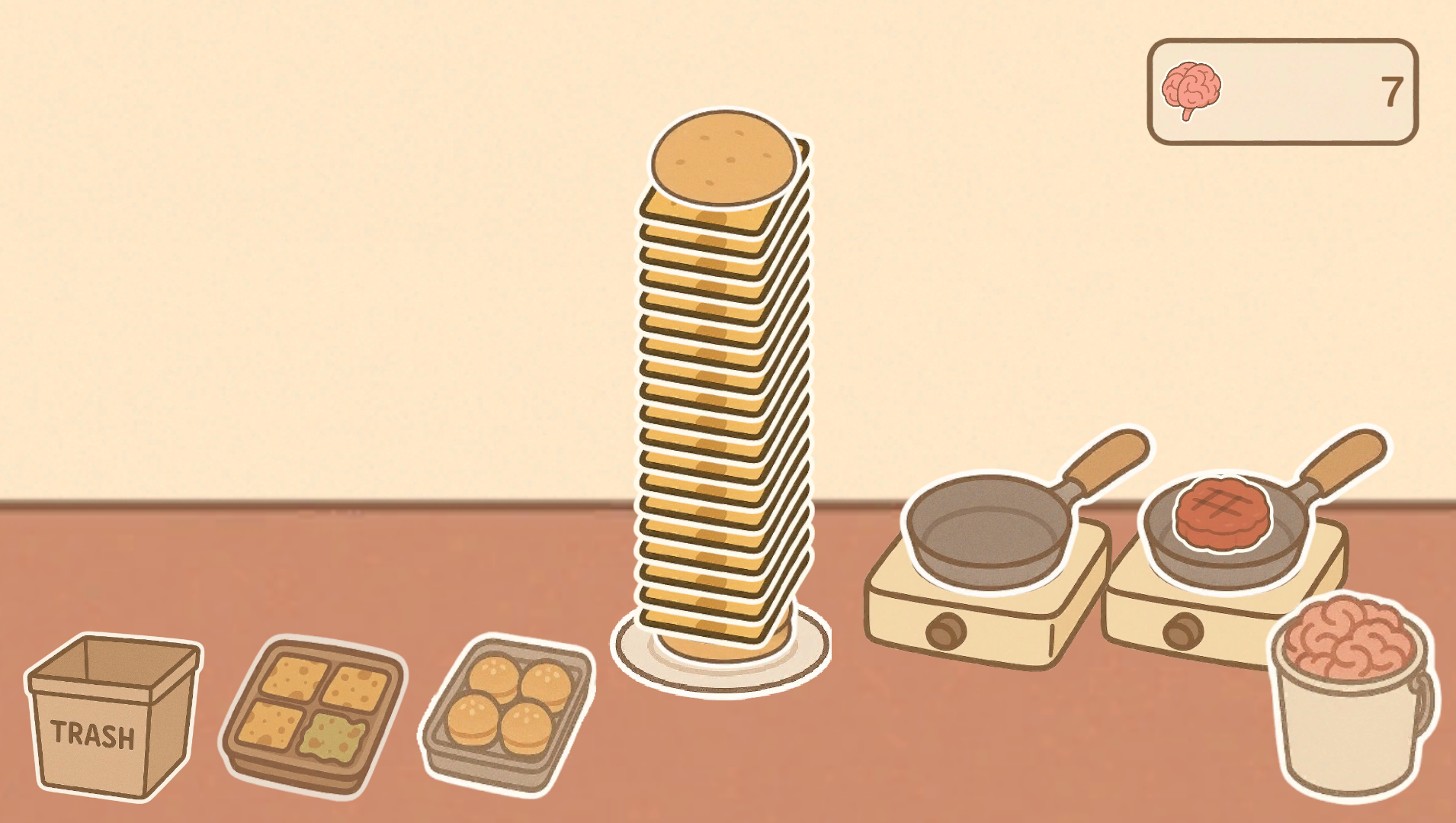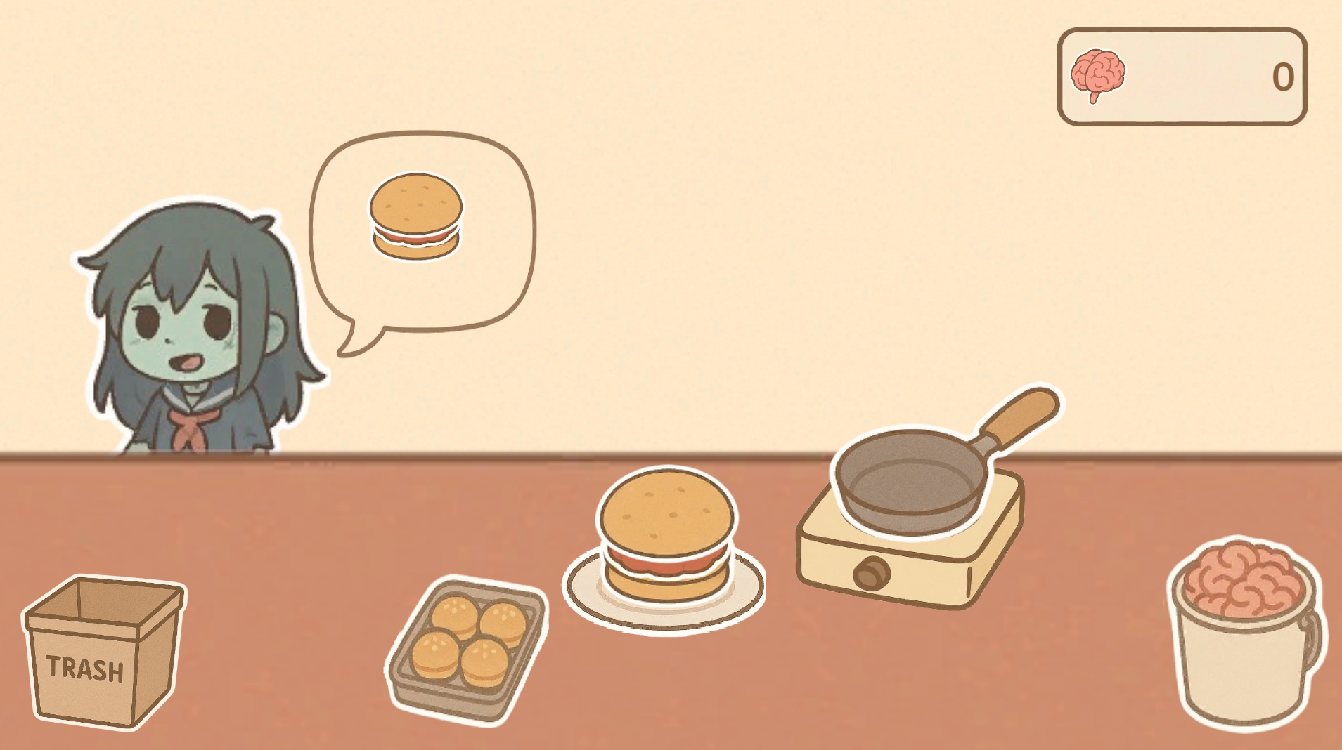 In Brain Joint, you run a cozy little burger joint in the middle of a zombie neighborhood. But don’t worry, these zombies are friendly (and very polite). They’re just a bit... hungry.